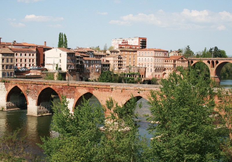 - アルビの街の象徴は、タルン川に掛るヴィユー橋。1050年に建造されたヨーロッパに現存する最古の橋の一つ。(写真上)