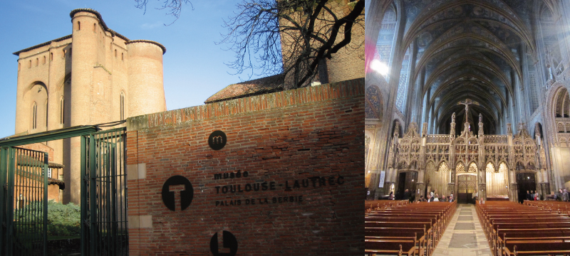 - アルビはロートレックが生まれ育った町としても知られています。現在ロートレック美術館となっている、13世紀に司教の住居として建てられたベルビ宮殿(写真左下)。