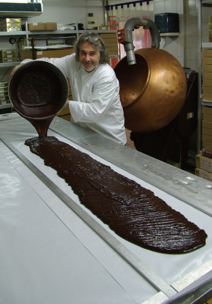 アルチザンは職人であると同時に、味の芸術家・アーティストです。 ミッシェル・ブランは、現在主流となっている機械による大量生産を一切行わず、頑なに手作りのクオリティを守り続けてきました。 アーモンドやフルーツリキュール等の食材は、伝統的にショコラティエが手作りしてきたように、彼も半製品化された食材を安易に仕入れず、高度な職人技術でお菓子作りを行っています。 ミッシェル・ブランの手仕事によるショコラは、その滑らかさ、繊細さで、フランスでは、「世界で最も美味しいショコラ」と評されています。
