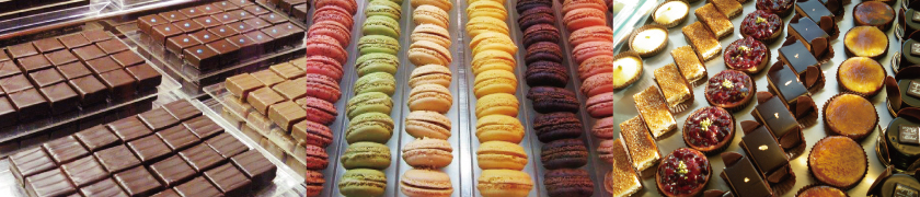 ミッシェル・ブランの本店があるのは、街の中心に位置する公園の傍。 レンガのオレンジ色とチョコレートカラーを取り入れたシックな店内には、ショコラを中心にマカロンやケーキ類などが所狭しと並んでいます。 計り売りのショコラやラッピングに工夫を凝らしたギフトもあり、お店を切り盛りするマダム・レジーナの温かなもてなしで、地元の人から愛されています。